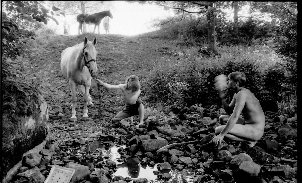 Botaniserar för fullt bland mina gamla negativ och hittade något slags tema som verkade viktigt för mig på den tiden. Vad man höll på alltså – allt från att hänga upp kompisar från fotoskolan i något träd utanför kärnkraftverket i Oskarshamn föreställande någon slags jesus och fem i tolv snart brakar det loss känsla och det var redan 1989 – jag menar ta samhällsklimatet och debatten idag, typ samma snack fortfarande.
