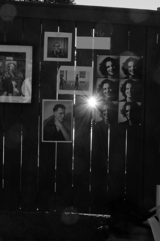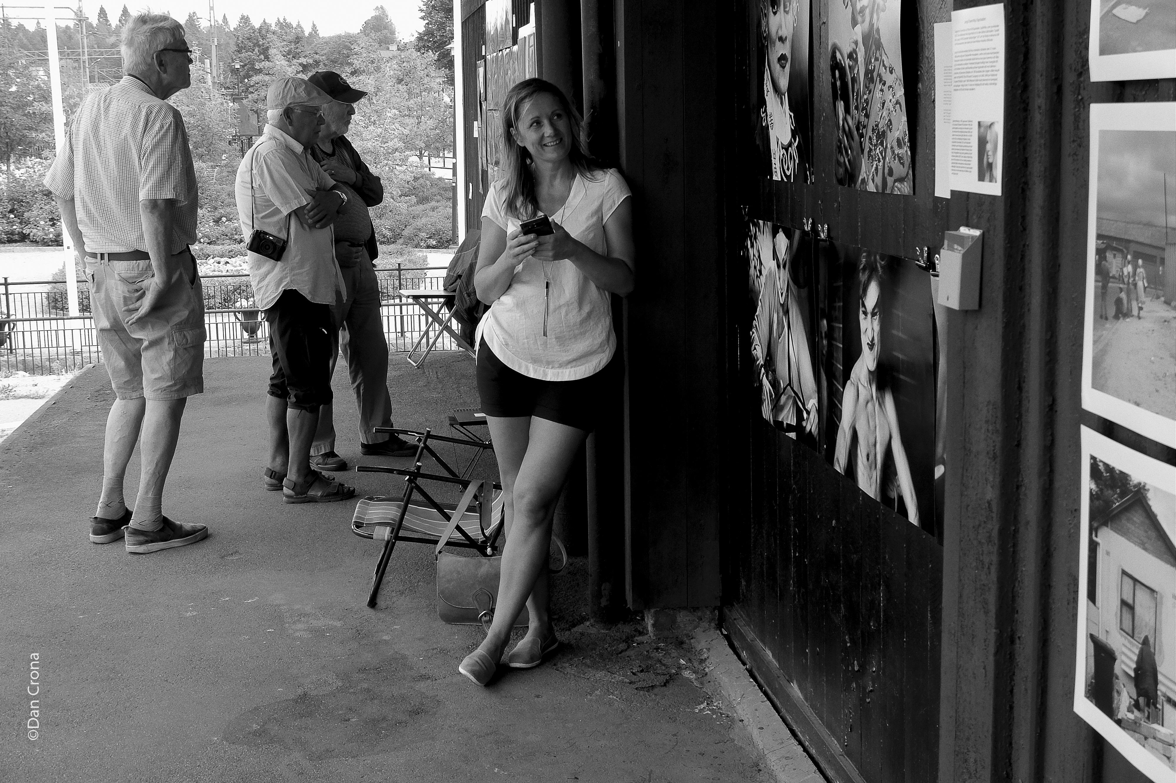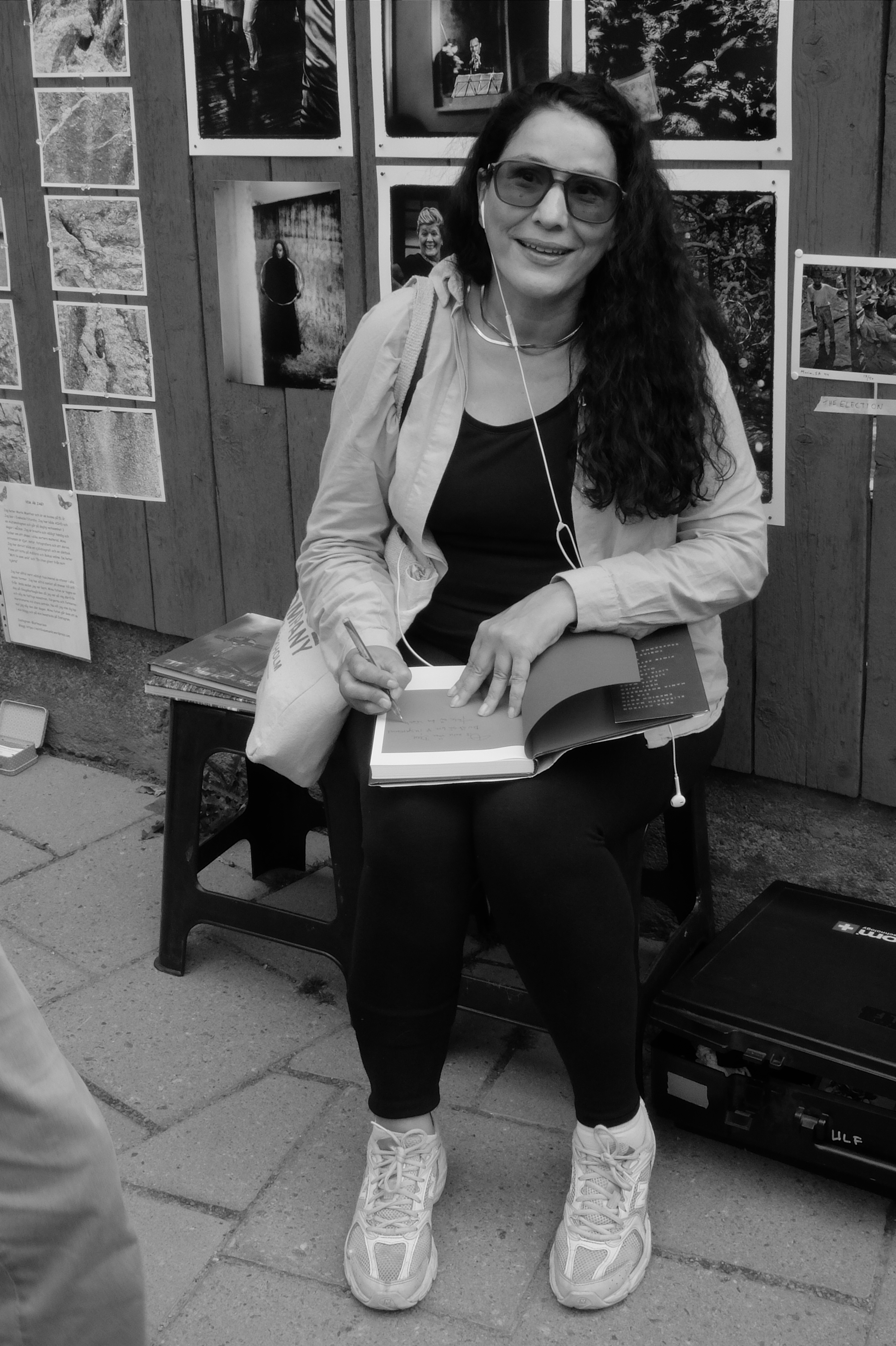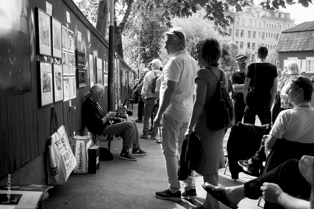 Någon knackade på galleriets fönster och hon viftade med handen att gå ni vidare jag kommer.